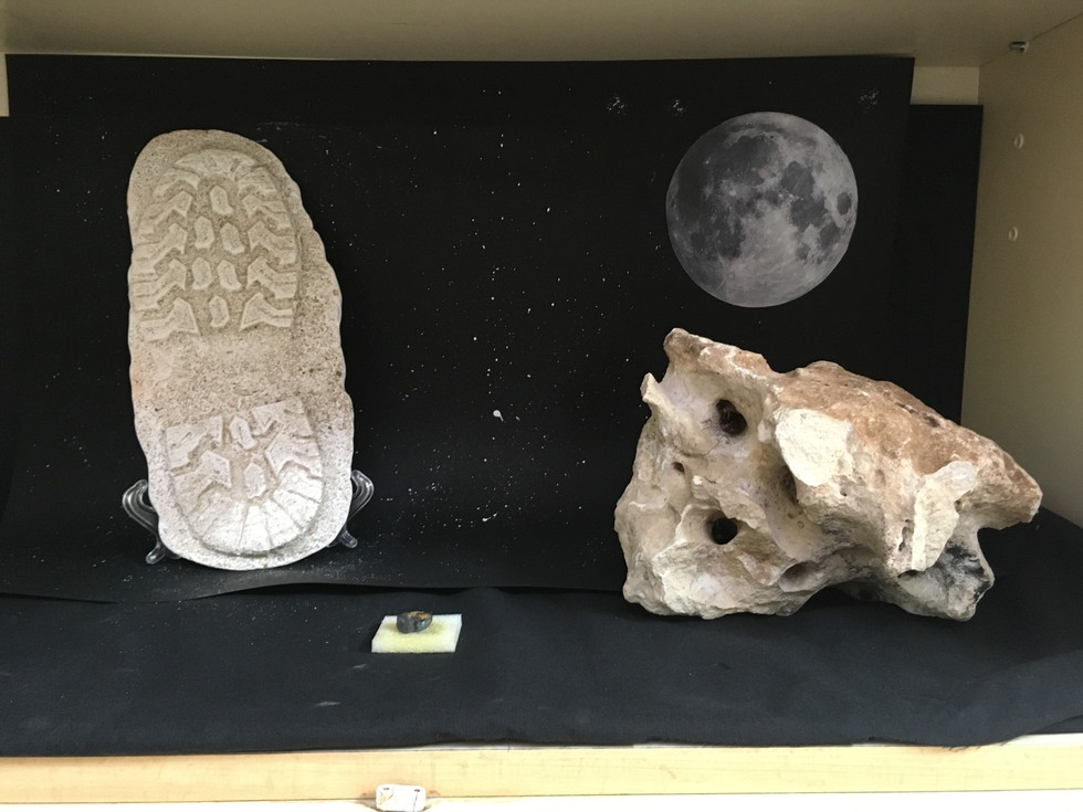 Los alumnos del Primer Internivel tienen que investigar una desaparición. Hace unos días, con motivo de los 50 años de la llegada del hombre a la Luna, el centro que la Agencia Espacial Europea tiene en Cebreros nos prestó temporalmente una roca lunar y un molde de la primera huella de Armstrong en la Luna.